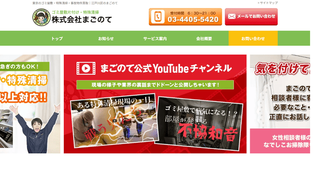 ゴミ屋敷や汚部屋の掃除に特化しており、片付けから特殊清掃、ハウスクリーニングまで株式会社まごのてにて、全て一貫したワン・ストップ・サービスが受けられます。