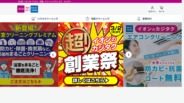 カジタク(アクティア株式会社)は、ハウスクリーニングや宅配クリーニングを提供している会社です。ハウスクリーニングはエアコンやレンジフードなどの部分ごと、または「大掃除代行サービス」などまとめて依頼することも可能です。